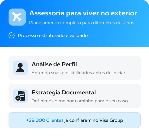Do planejamento inicial até a sua residência no exterior, conduzimos cada etapa com estratégia, clareza e suporte completo.