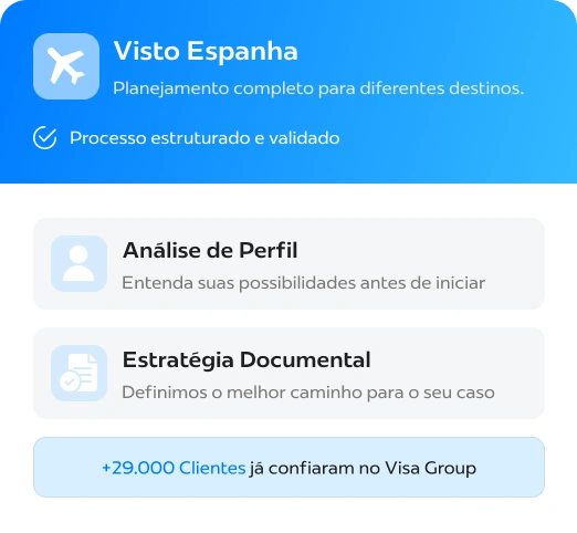 Nossa equipe analisa o perfil do cliente, organiza a documentação necessária e prepara o processo. Após a preparação, realizamos uma reunião final de revisão de todos os documentos antes do envio ao consulado.